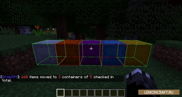 Мод DropOff добавит в игру специальную кнопку, с помощью которой вы сможете перемещать предметы из своего инвентаря в сундук одним нажатием клавиши. Данный мод очень похож на модернизацию DropOff из Quark. Но есть отличия, вы можете установить горячую клавишу и настроить мод полностью под себя. Так же данный мод перемещает только те предметы, которые находятся в данном сундуке. В итоге не получится никакой каши.