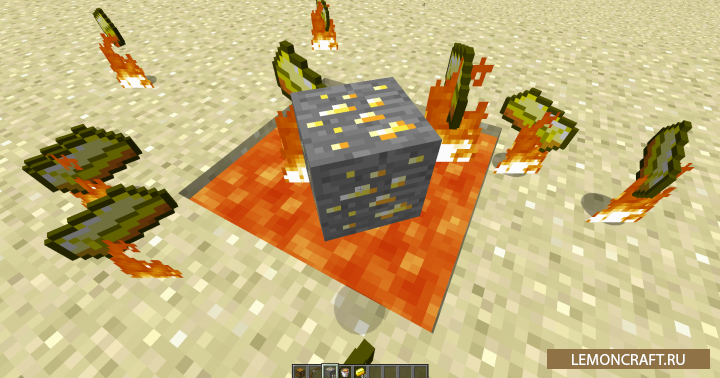 Мод на простую выплавку предметов Popcorn Smelting изменяет механику выплавки предметов, упрощая ее. Ранее для выплавки предметов вы должны были использовать печь. После установки мода достаточно кинуть предмет в огонь или лаву и готово. В итоге вам не нужно топливо для печи и сама печь, что позволит сэкономить ресурсы и время.